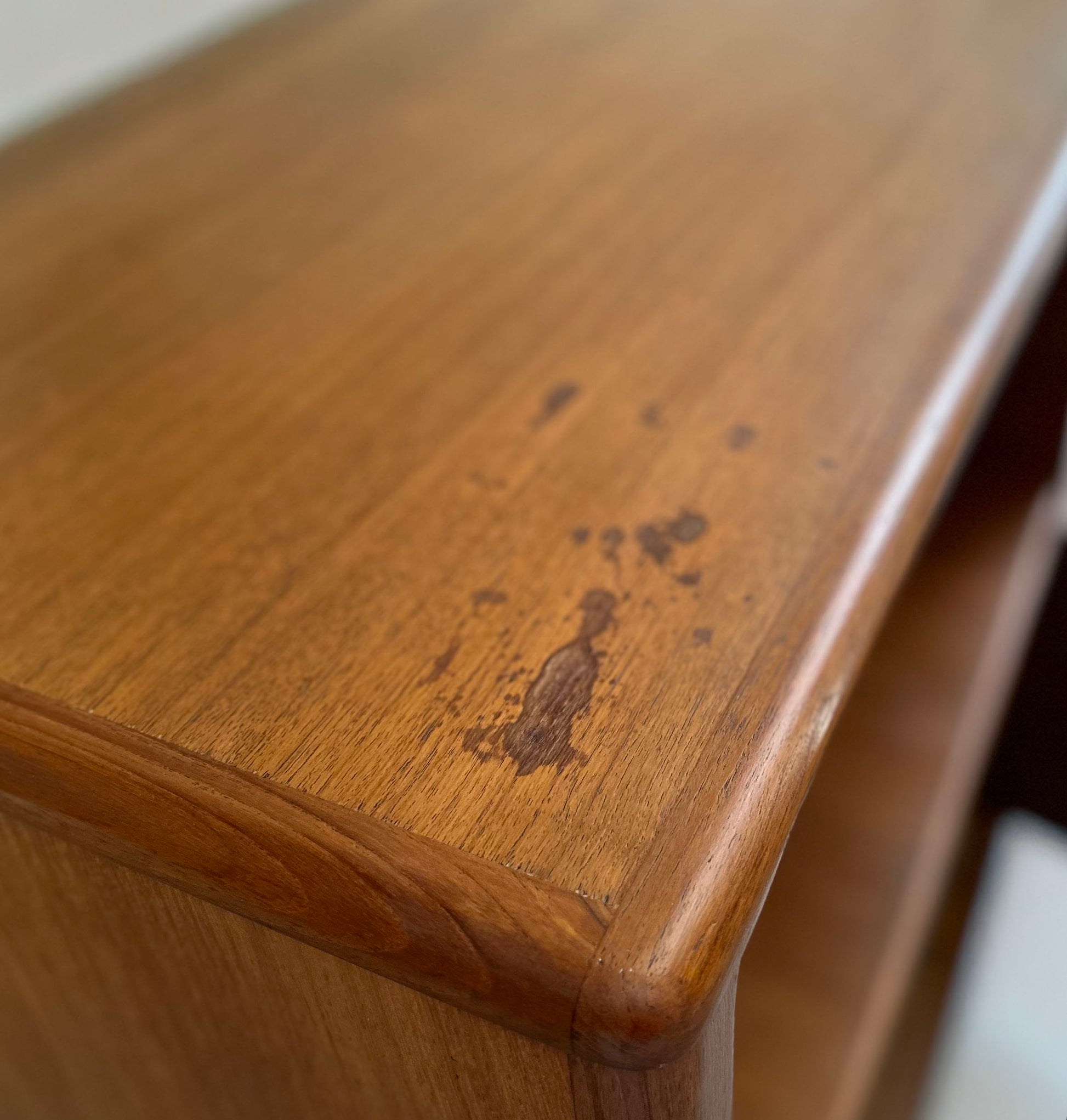 The piece is in excellent structural condition, with here and there small signs of use in line with its age. There are a few stains on the top left corner and a few smaller ones on the front left doors (see pictures). They can be removed by sanding, but we preferred to keep the original patina of the item.