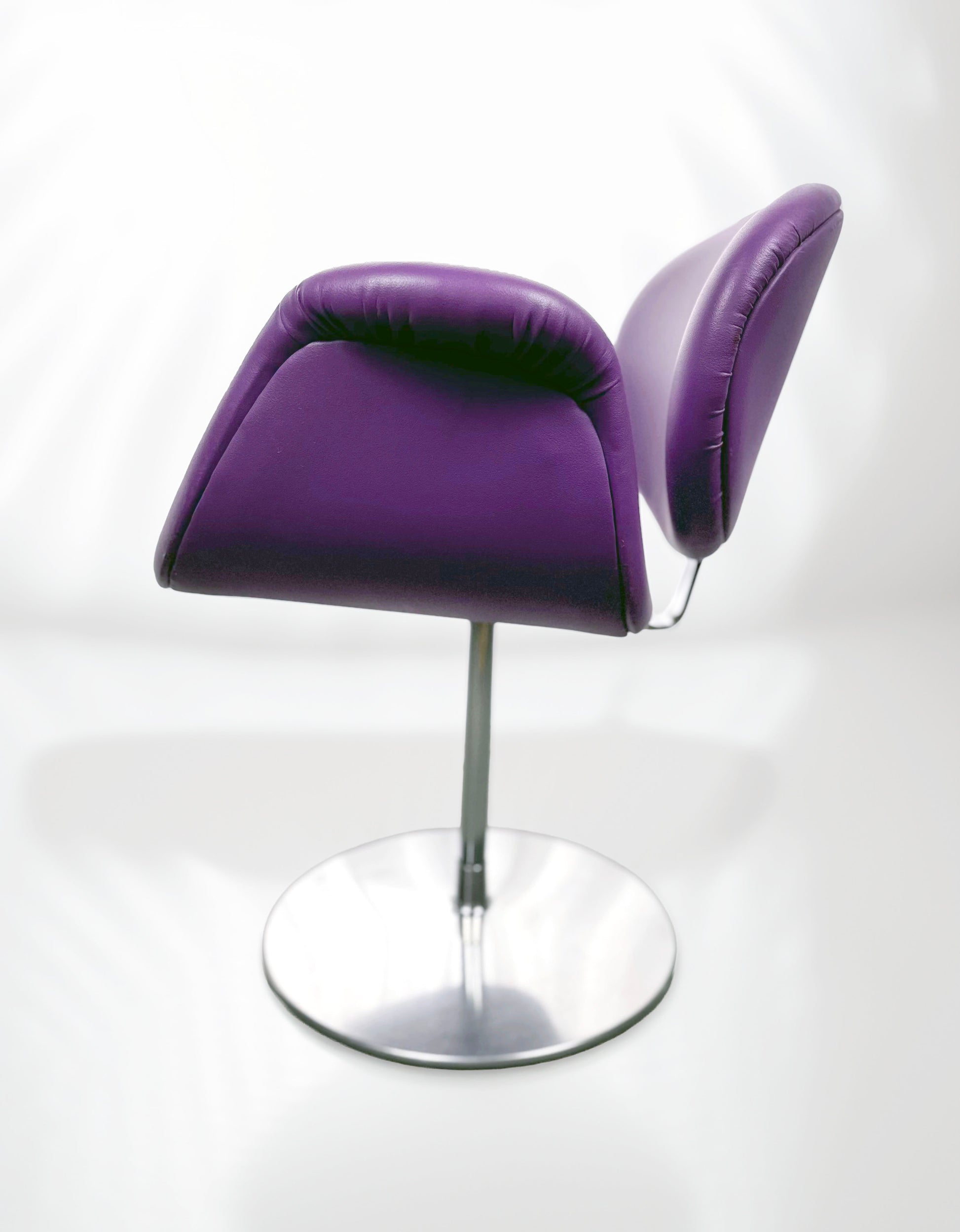 An original ‘Little Tulip’ chair, designed in 1965 by Pierre Paulin for Artifort. This one is a version in a funky purple leather on a stainless steel base, adding to the typical space age feel that this sixties design deserves.