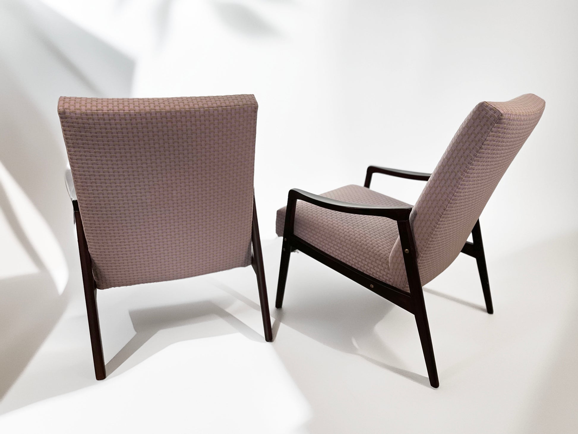 This pair of armchairs, attributed to the renowned Czech designer Jiří Jiroutek for Interiér Praha, embodies the elegance and practicality of mid-century design. Dating from the 1960s–70s, they highlight the typical refined aesthetic defined by clean lines and functional comfort.