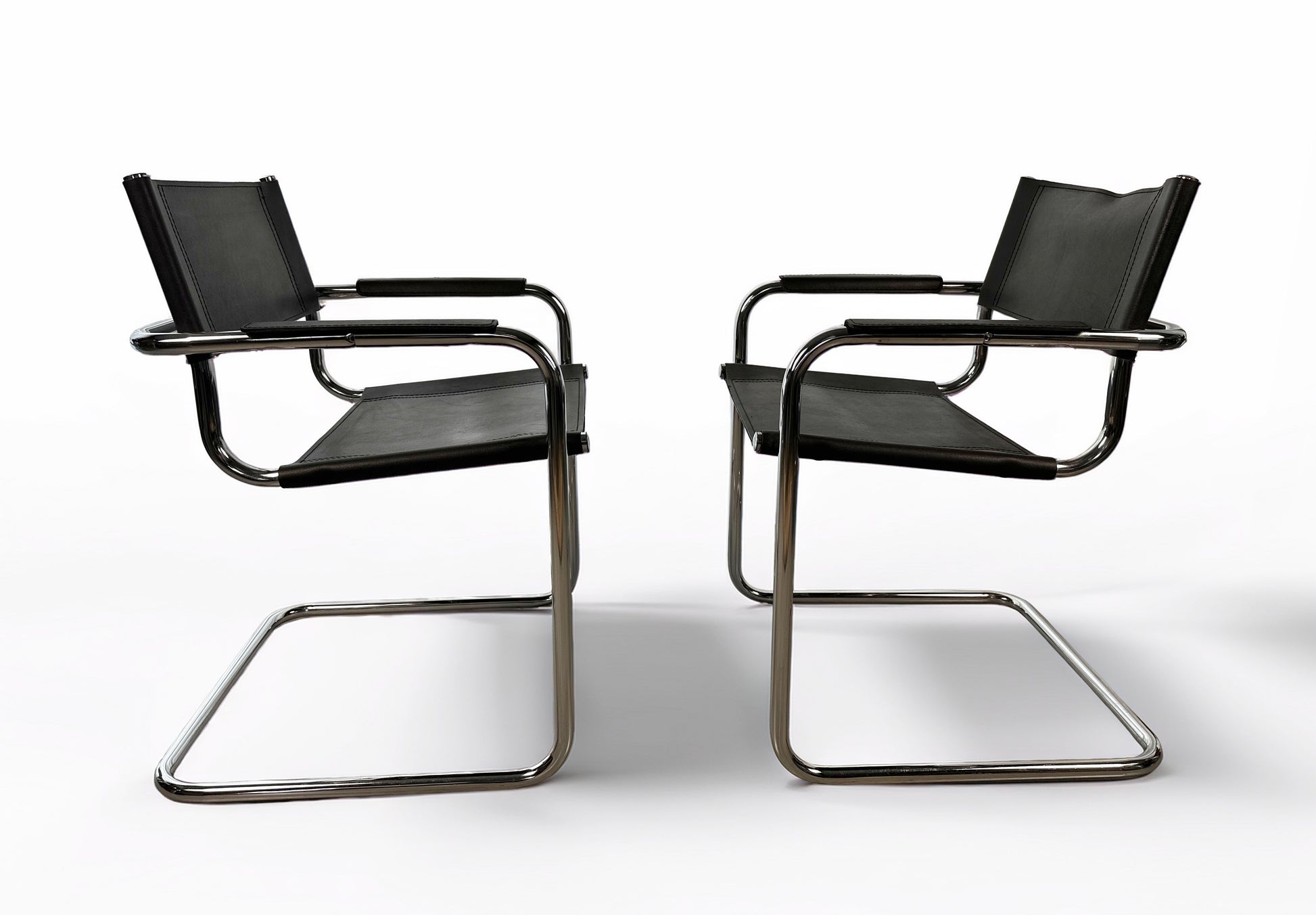 Set of 6 Vintage Cantilever Chairs in Chrome & Black
